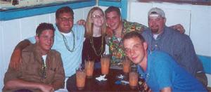 This is me with my Sig Ep buddies at the Sandbar. We got really cool toys this night, like blow up coozies and flip flop key chains. Fun stuff.
