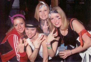 Here we are at DUs Menace to Sobriety party, throwing up our cool Westside signs (we all went to Shawnee Mission West). Man I love costume parties.