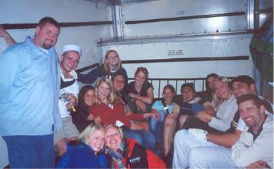 These are all the people that participated in Bar Golf. Timmy was nice enough to rent us a U-Haul so that we could be driven from bar to bar. Here we are, all crammed on the broken futon, on our way to Jetlag.