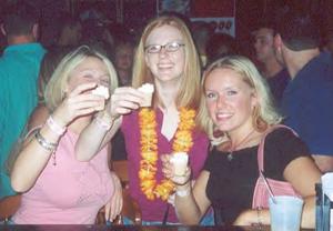 My roommate Laura, Me, and Stacie doing some shots at the Hawk. The Hawk was completely remodeled this summer and the lei was in celebration of the reopening.