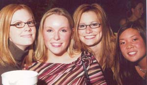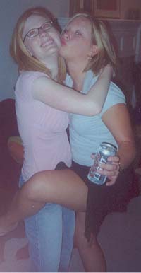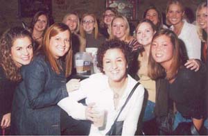 These are my roommates for this year. Janessa, Laura, Jenny and me. We took this picture ourselves back in the kitchen of Flannigans. Laura was a little hungry this night, so she took it upon herself to fry up some raviolis and chicken tenders, courtesy of the bar.