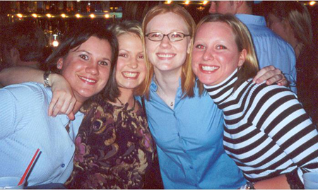 This is me, Stacie, Krissa and Lauren at Club 508 for our In/Out Party with Sig Ep. So, we got in Rock Chalk which is really exciting.