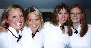 This is Jenny B, Katie P, Monica and me over at Sig Ep before their Boxer/Bowtie party sophomore year. It's a beer throwing party so you wear boxers and a bowtie and get totally wasted and do beer slides and stuff, it's pretty out of control.