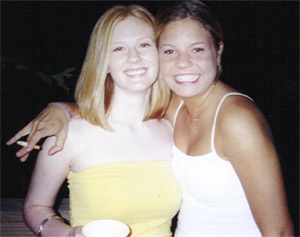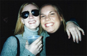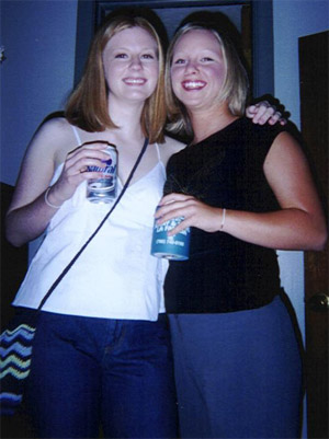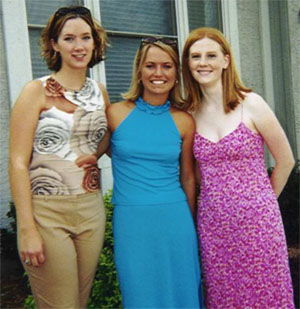 This is me with my friends from high school, Ashley and Rachel. I believe we're at a party celebrating our friends Steve and Scott's 21st birthdays.