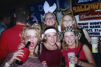 This is Jenny B., Goward, Jen Lewan, Stacie and me at the Hawk for Halloween. We all lived together in Corbin Freshman year. 6-North love.