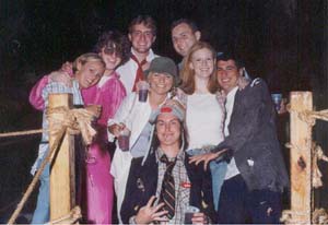 Here is a group of us at Shipwrecked. The pledges put in a lot of hard work to make Phi Psi's outdoor patio look amazing. They use sandbags and make this huge moat that is filled with heated water. In this picture we're actually on a bridge above the water, but soon we were all soaking wet.