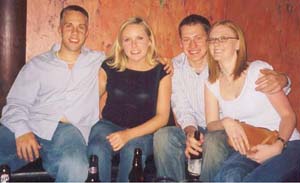 This is Stacie and me with our new friends Mark and Eric at Goodbar. We met them at J. Barleycorn's and hopped onto their birthday limo/bus and rode around Chicago with them. It was a good time.