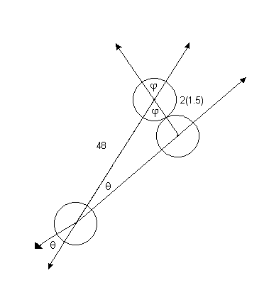 We can extend the line through the centers of the two cue balls to help us. This will help us see the approximate angle of θ, therefore letting us solve the equation for φ.