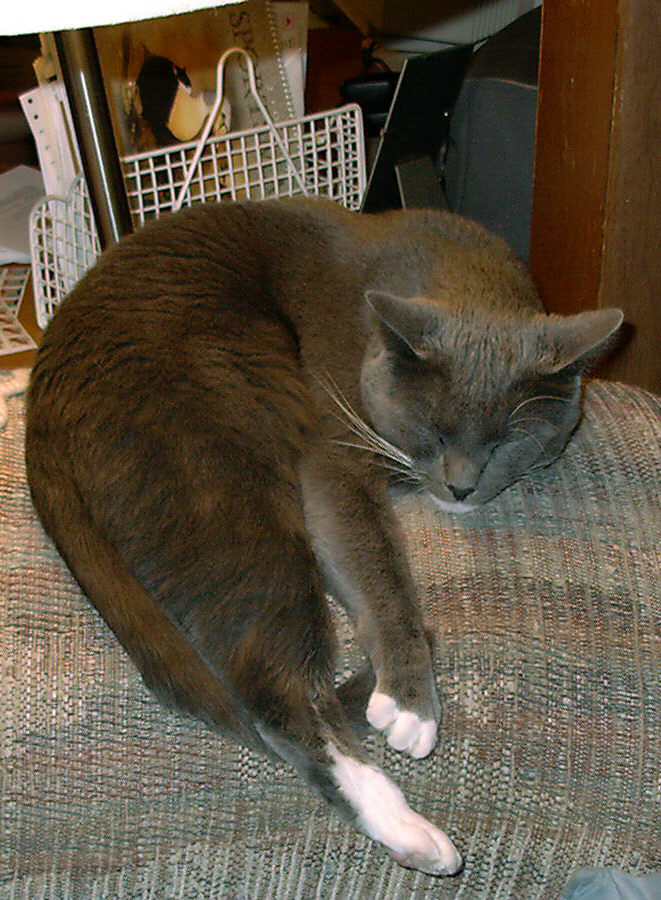 This is my cat he is one of the funniest cats i know b/c he is always jumpy and he is always sleeping.