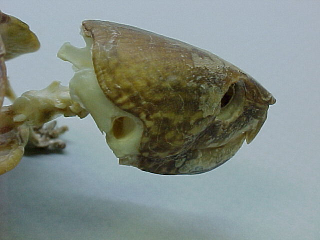 Platysternidae is represented only by this species. Its head is so large it cannot be withdrawn into its shell. The skull is covered dorsally with a scute and is osteologically interesting. This species occurs in southeastern Asia and its carapace can reach up to 18.4 cm. There are five subspecies recognized. This specimen died in captivity.