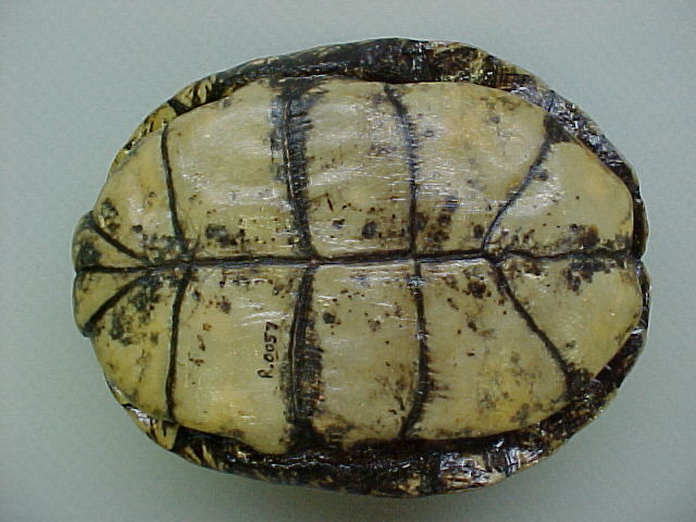 The European pond turtle is the single living species of it's genus. This semiaqautic turtle is unique in being the only turtle to range throught most of Europe. It can reach a length of 20 cm. This specimen died in captivity.