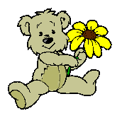 This is Cheer Bear's best friend, Sunnie! He holds the flower for the page... I picked Sunnie up at the Animal Shelter. |