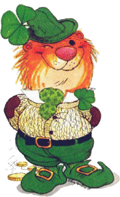 During St. Patrick's Day paper four-leaf clover decorations are a must (both paper & window stickers). Green paper for the bedding this time. You can also buy GREEN treats to stay with the St Patty's Day green theme!