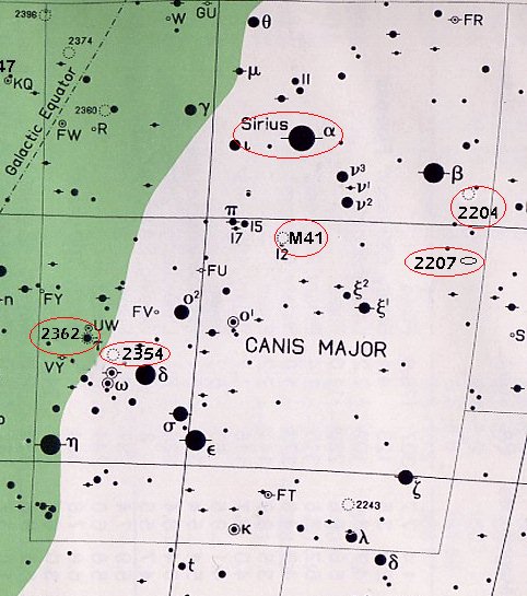 in Canis Major. Our tour goes in order of Right Ascension, which is right