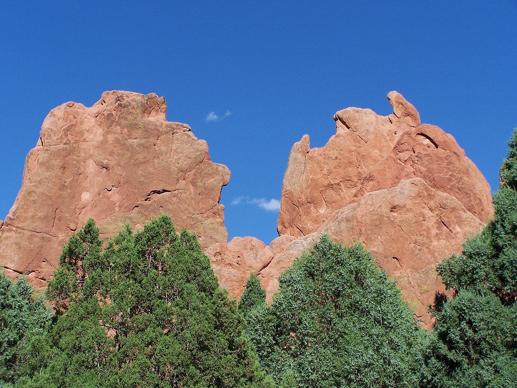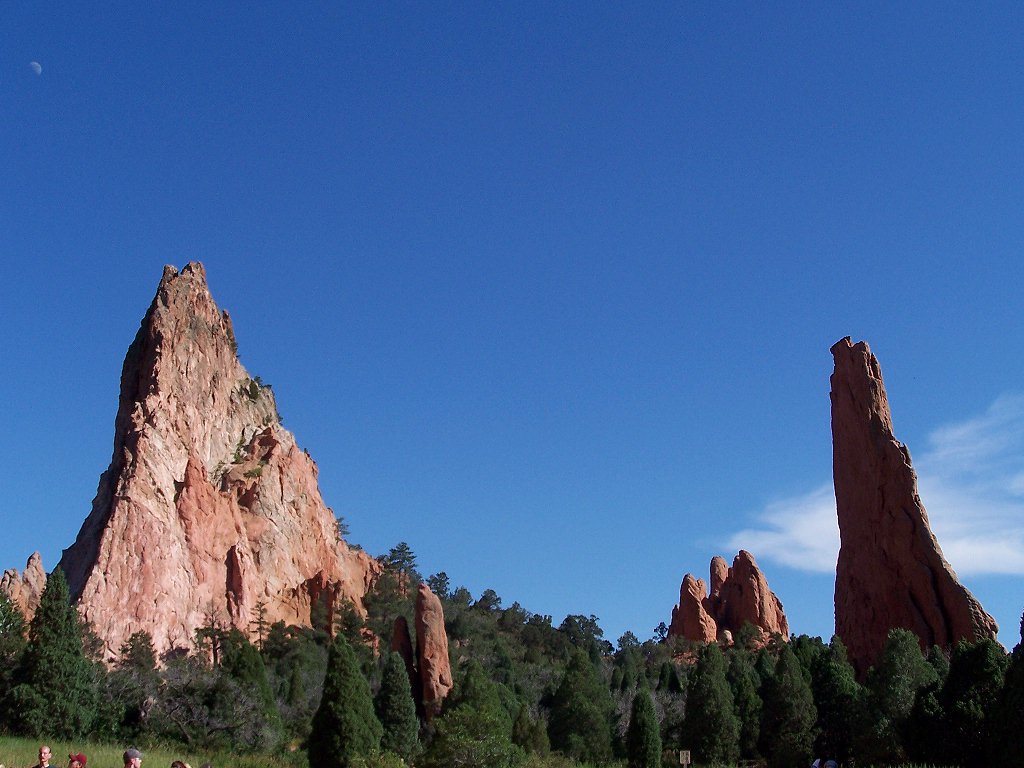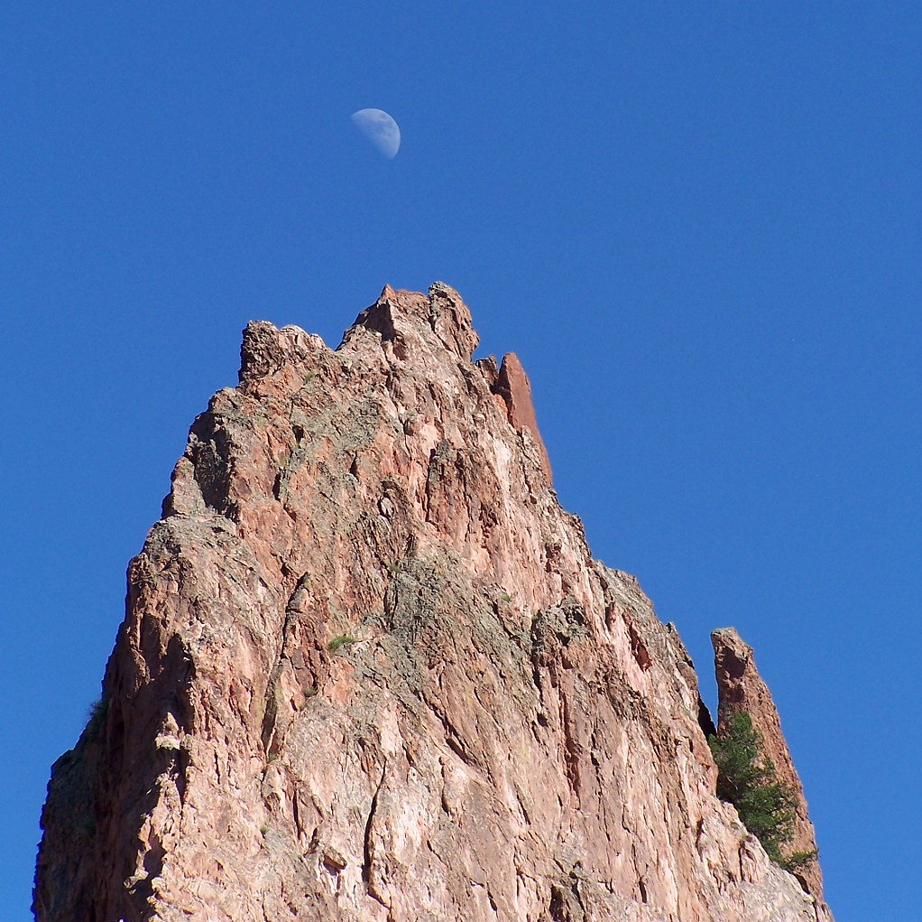 Garden of the Gods, Colorado Springs, July 2007, with the first quarter moon.