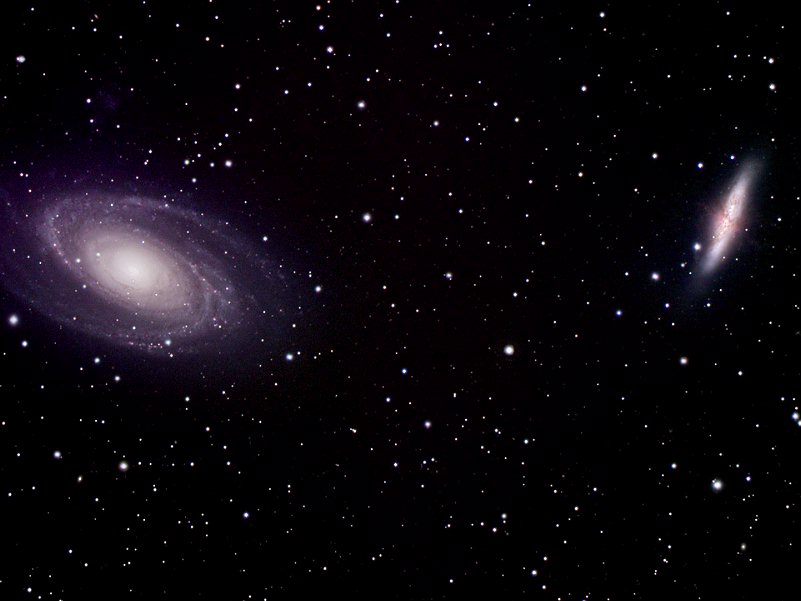 M81 and M82 are perhaps the most famous pair of galaxies in the sky. Located in the constellation Ursa Major, they can easily be seen in any size telescope, as well as binoculars. Some extremely sharp eyed observers have even claimed to see them with the naked eye from very dark sky sites! More info about M81 and M82.