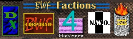Eric Viger Wait....here it goes, a compliment directed towards Eric Viger. The BWF would not be the same without him. Viger and Ryan Hale have provided us with some of the most heated matches in BWF history. When these two bring their disputes that arise at Ponderosa Steakhouse, their place of employment, into the wrestling ring, you can feel the mutual hate that exists between them. Viger made the biggest move of his career when he, along with DJ and Ian, formed the Trash faction. Viger and his long time partner DJ
