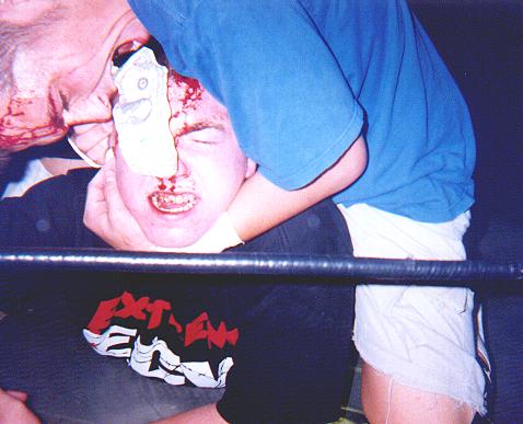 2 Hardcore stapling Justin Sane in the forehead