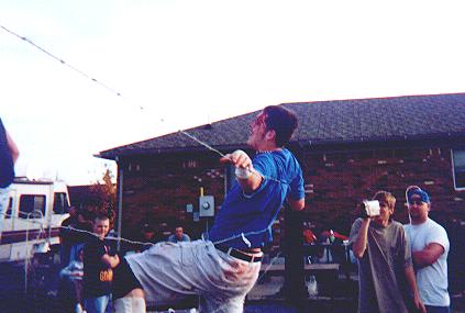 Justin Sane using the flaming chair on JC