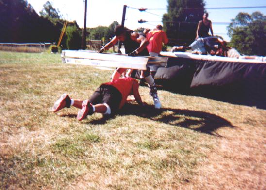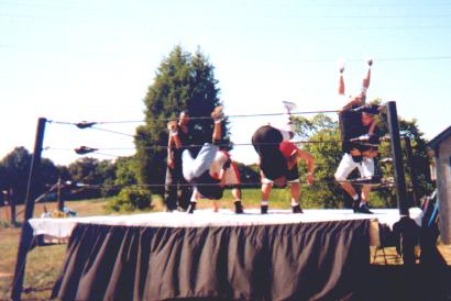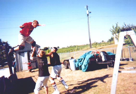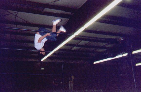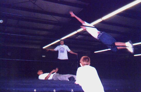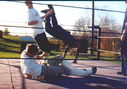 J.R. with a spring board senton flip on JC & J.B.!!!
