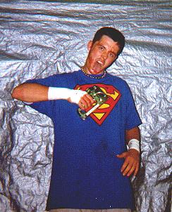 Suicide after diving off of a 10ft. cage a driving JR throught a table....