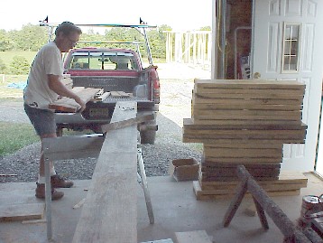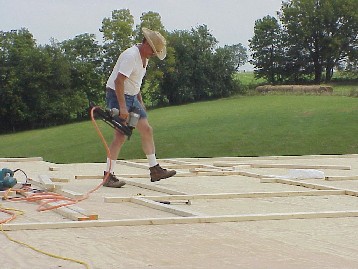 It was a HOT MUGGY day, but breezy. John and Mary Ann loaded the precut window and door studs as well as the wood for the sole plates into the truck. We started laying the sole plates. Marg came over to help. John did the nailing and cutting and Marg and Mary Ann helped align the boards and unload all the boards. John and Mary Ann even got to waltz around the sun room.