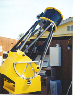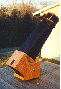Ruby is another 12.5" f/6. The mirror in this telescope is an excellent 1971 Coulter. This is a very user friendly and fun scope to use. It was completed in April 1998. This scope is now in Louisville, KY and is owned by a good friend and member of the Louisville Amateur Astronomers. Ruby is used at their Sidewalk Astronomy programs to introduce people to the night sky. The name "Ruby" was selected by the current owner to honor his late grandmother. |