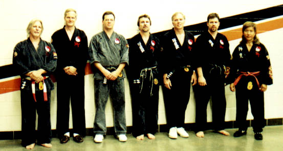 I would like to introduce the Masters promoted in 1999. L to R: Senior Master Bill Leonard, James Halliday, Scott Frasure, Tony Gray, Tim Ray, Joe Shaefer, Grand Master Sin The. Not pictured: Gordon Burkette