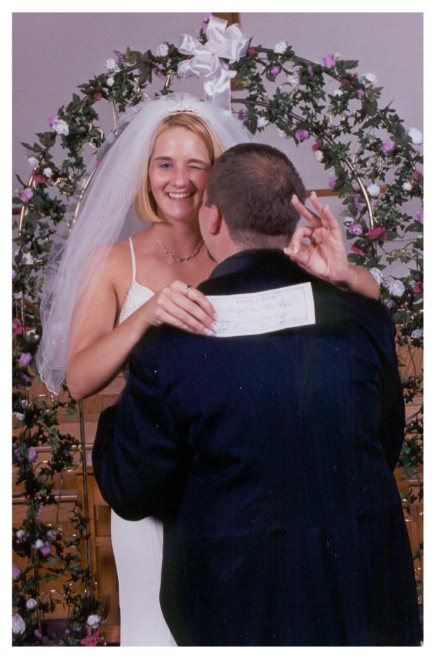 This is another picture that the photographer set up with me holding our marriage license. "I got him today, but he'll get me back tonight!!!"