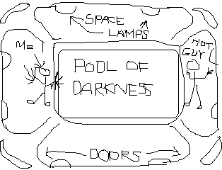 we are from planet earth. a hot guy i think two girls and me and this other guy. first i believe our ship is going down and we found a different ship. we decided to go there and find some supplies that would benefit us at our time of need. it was a motherfucker--ship dark sleek and curvy like a klingon ship from star trek. we didnt bother to arm ourselfs because our computer reads that the ship is abandoned and there are no life forms on board. so we just had our shitty hand laser guns and some equipment for scanning shit. we got beamed down(did you know that....scientists have discovered the first step to teleportation!) and we landed in a pool with space junk in it. it was dark and the only sources of light came from space laterns and electrical sparks showing that the space ship has probabaly been attacked or something. i remember we are swimming in the pool and it was fucking freaky because it was dark in the water and i cant see what was under us. so we swam to the sides. the hot guy was doing some scanning and he said that this place seems to be unsafe. whatever that means. i think i was the captain with the super psychic powers. i said. "i knew this place wasnt safe ever since the spaceship came into view on our computer screen. it seems like its been invaded and the occupants of this ship is evil." my other ship mates, the girls, were yelping and screaming cause they were still in the water. they said they felt something rub against their legs. they swam quickly to the edge where we were. there was a globe or dome that started to slowly move in the water. everyone was panicking. me the psychic-calm-brave-leader said "don't worry guys. i sense that this isnt bad or evil. just wait" so the thing morphed or opened up and became a huge lifesize bug that was walking on its hind legs. i think it said " you are trapped i see. " i panicked so everyone else panicked and we tried to press the random colored steel keys in the dark at the doorways.