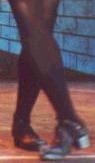 Front Click - You do the same as you would in a front kick (see softshoe steps) except that you click your heels in midair. Make sure to turn your feet out to make the click easier, and focus on clicking the heels of the shoes, not your actual heels.