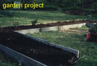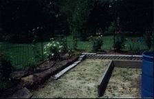 We decided to build raised beds to grow our roses in, our back yard gets lots of sun all summer long. We made the decision because I had read so much about the benefits of gardening in a raised bed: it's easier to keep weeded and mulched - less stooping and straining; the soil warms up earlier in the spring; the depth of the well drained soil is greater then most garden plots, so plant roots can spread easily; raised beds lend themselves well to organic gardening techniques including intensive planting, since you don't need to leave large rows to move around in.