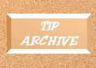 | I AM SORRY TO ANNOUNCE THAT THIS PAGE HAS CHANGE VERY MUCH!! I FOUND THAT I AM NO LONGER ABLE TO ADD TIPS IN 'ALL' CATAGORIES EACH WEEK. SO, I WILL BE ADDING TO THE CATAGORIES RANDOMLY WITH MY OWN TIPS OR, OF COURSE, WITH THE ONES YOU SUBMIT. I AM SO SORRY ABOUT THIS. IF YOU WOULD LIKE TO BE NOTIFIED WHEN THESE TIP PAGES ARE UPDATED JOIN THE NEWSLETTER. YOU WILL FIND THE LINK TO DO THIS BELOW. TO GET TO THE TIP ARCHIVE PAGES(WHICH IS UNDER CONSTRUCTION) AND VEIW PAST TIPS PLEASE HIT THE 'GET THE TIPS' BUTTON BELOW |