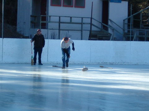 The first day in Naseby, we wanted to go iceskating. These fearsome warriors had different ideas though. They were busy playing the old Scottish game of Curling on our icerink. Luckily for us it was quite entertaining.