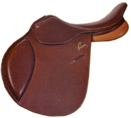 | Combines security, versatility, and comfort. Features forward flaps. Special grip calfskin seat. Knee pads and pencil knee rolls. Has a flatter/close contact seat. Built tough for years and years of riding. |