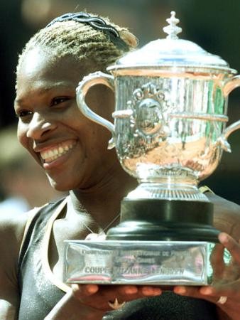 USA's Serena Williams poses with the cup at the Arc de Triomphe Saturday June 8, 2002 in Paris after winning the women's French Open tennis tournament at the Roland Garros stadium. Serena Williams defeated her sister Venus 7-5, 6-3.