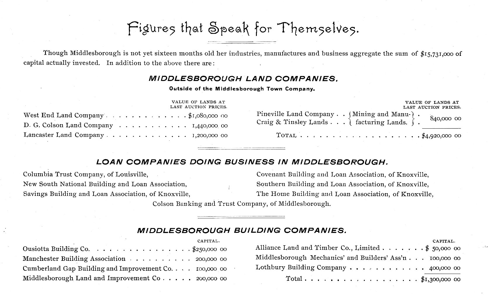 If you download these scans or any others on my web pages, please just provide a link back to middlesboroughhistory.com. Thank you for your thoughtfulness on this issue. It doesn't take a great deal of money to keep the website. It does; however, take a huge amount of time to get everything ready to post.