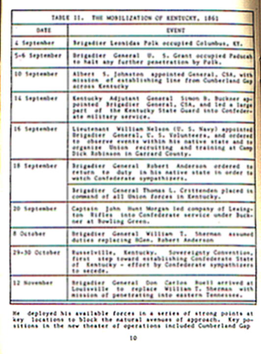 List of Military Activity in KY in 1861