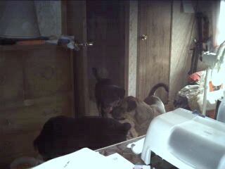 Misty and Gruff watch Brandi eat.