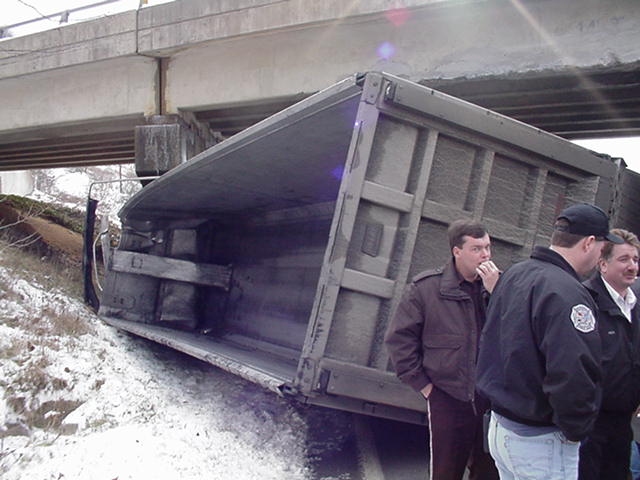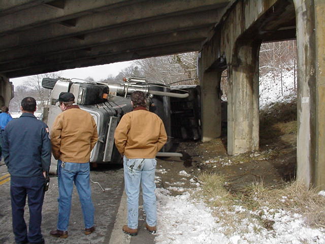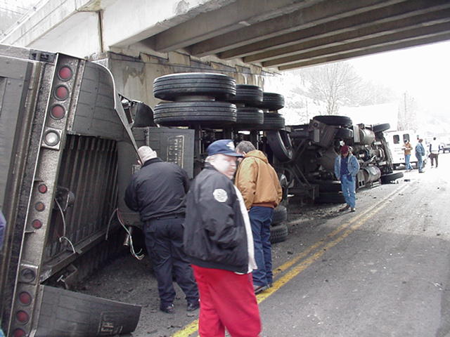 This Accident happened on January 19, 2000 on KY Route 7 at the Mountain Parkway Overpass at approximately 10:30 a.m. No injuries were reported and the cause of the accident is unknown.