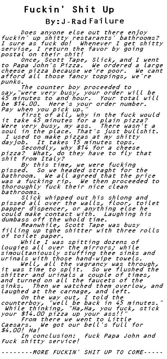 Send us stories of you fuckin' shit up at RivalX Rt#2 Box 178-E Booneville,KY 41314 or a JPG file to the e-mail address below.
