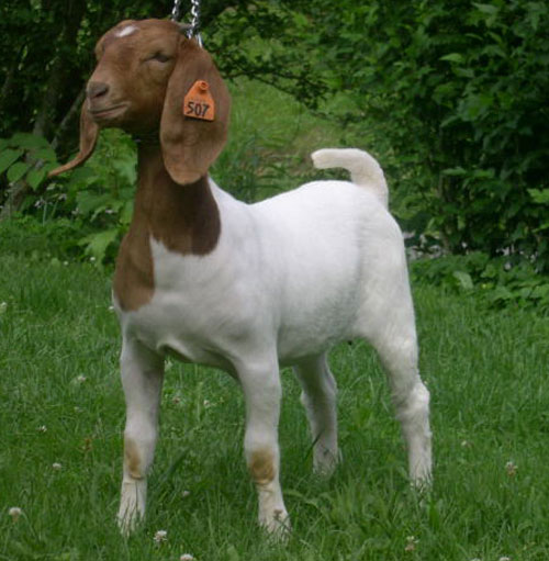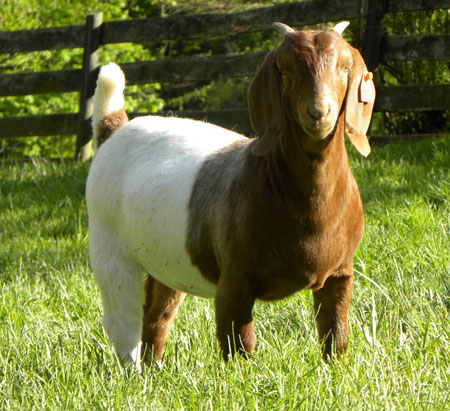 A Royally Bred RRD Buck, V808 is one of the First sons of Ruger- the $42,000 high seller at the Ryals Dispersal. If you're looking for length, power, style, correctness, fast gaining kids, and an added Splash of color.. V808 can deliver! Lightly shown in 2007 he earned 55 ABGA Points. His First kid crop earned 359 points in only three months of showing in Spring 2008! He was Ennobled from his first three kids at only 29 months! V808