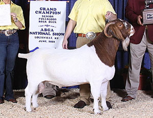 The result of crossing the 2008 National Champion Doe to the 2010 National Champion Senior Buck. There is no doubt this dude is a Superstar! When you take into consideration the length, muscle, and eye appeal this buck has it is no wonder why he's producing show winners.