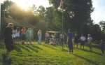 Gathering around the flagpole before supper