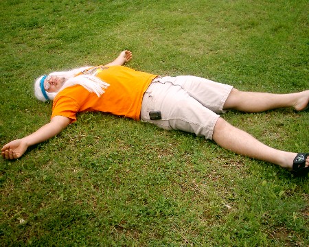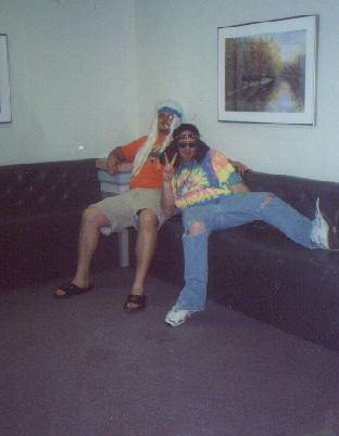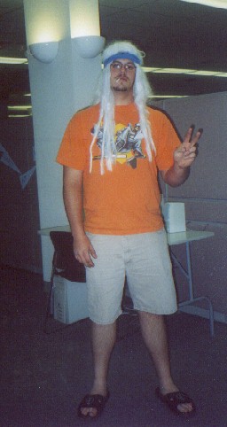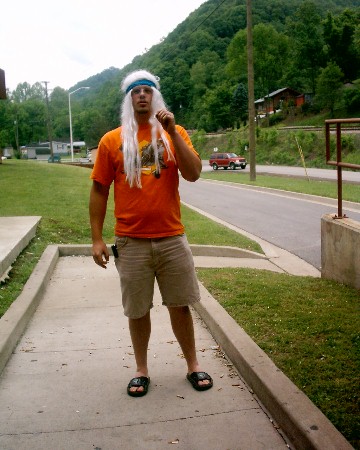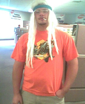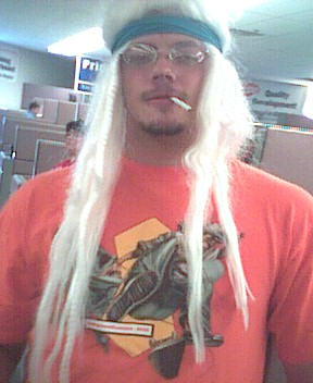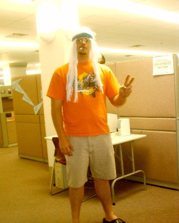 Matt wore a white wig that I brought to work with me and we put a headband on him.