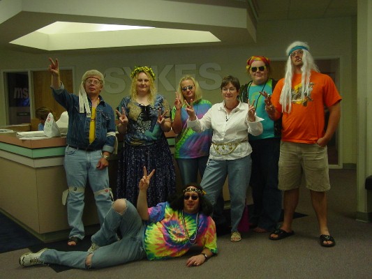 We all had fun on Hippy Day and took lots of crazy photos, several of them outside by the loading dock.