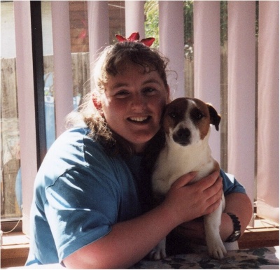 Lorraine and Sasha with first place puppy trophy at Brighton - 11th November 2001