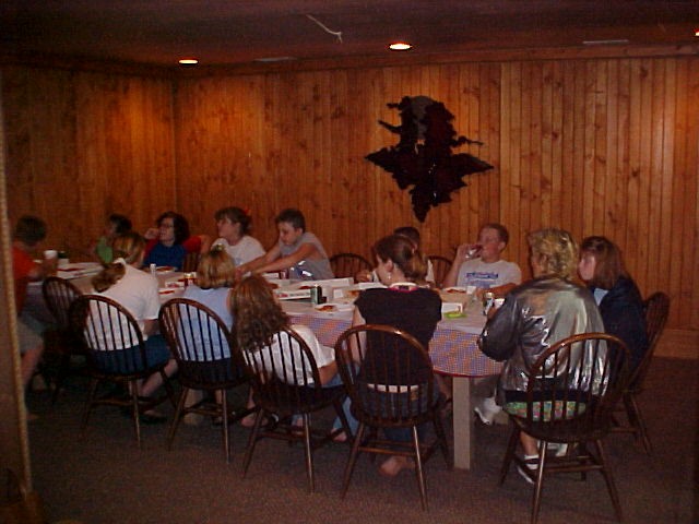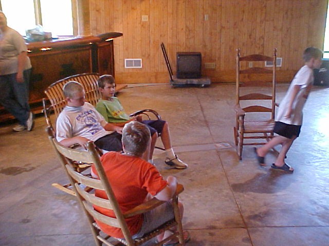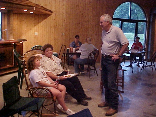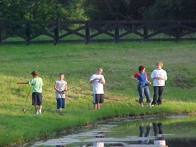 Saturday morning as they began to wake some had breakfast, but others choose to hit the lake bank. The girls gathered around the table and were treated to make-up tips by two Mary Kay representatives. The boys were given pictures of objects and location in the area and were sent on a scavenger hunt. The very beautifully made up girls were now finished and couldn't wait to help the boys with their hunt. They were just in time to be caught in a terrific downpour, well so much for make-up. Everyone came in for dry clothes and finished off the pizza from the night before and the cookies that were suppose to be for the club meeting. Now it was time to go fishing in the BIG lake. This one had a dock and swimming area. Not having swimming on the agenda, no one had swimsuits, but that didn't stop anyone. Now it was getting close to time for the club meeting and everyone was directed back to the barn and more dry clothes. Charlotte stated that she thought everyone had a good time and were already asking about doing it again next year.