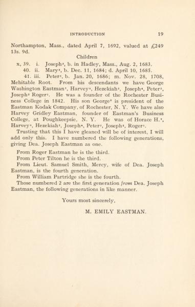 History and genealogy of Deacon Joseph Eastman of Hadley, Mass. Grandson of Roger Eastman of Salisbury, Mass. (1908) Author: Eastman, M. Emily (Mary Emily), b. 1867; Rix, Guy S. (Guy Scoby), b. 1828 Subject: Eastman family; Eastman, Joseph, 1683-1769; Eastman, Roger, 1611-1694 Publisher: Westfield, Mass. : M.E. Eastman Possible copyright status: NOT_IN_COPYRIGHT Language: English Call number: 9631328 Digitizing sponsor: Sloan Foundation Book contributor: The Library of Congress Collection: americana |
