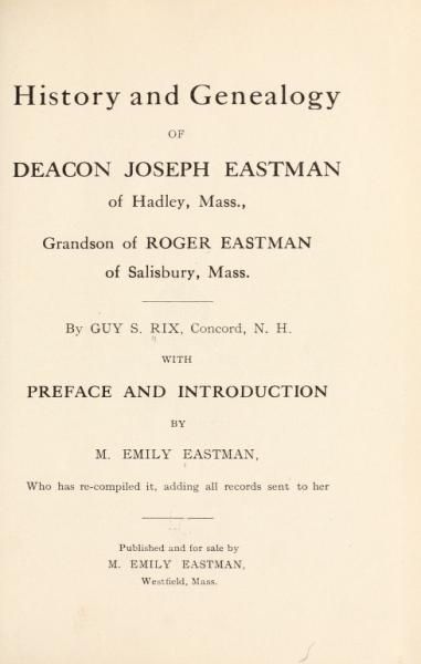 | History and genealogy of Deacon Joseph Eastman |